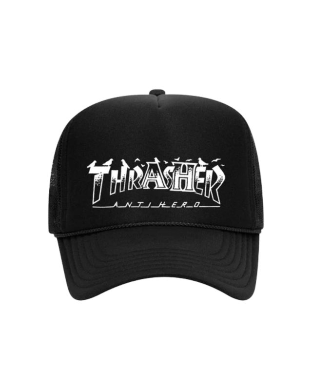 Thrasher x Antihero - Pigeon Mag Trucker Hat [Black]