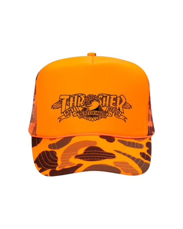 Thrasher x Antihero - Mag Banner Trucker Hat [Orange/Camo]