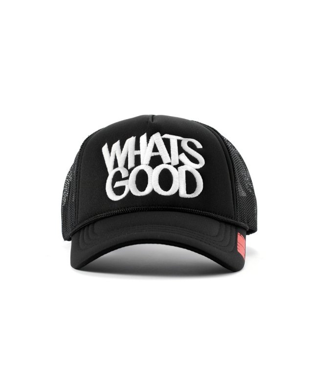 Whats Good Trucker Hat by Eric Haze [Black/White]