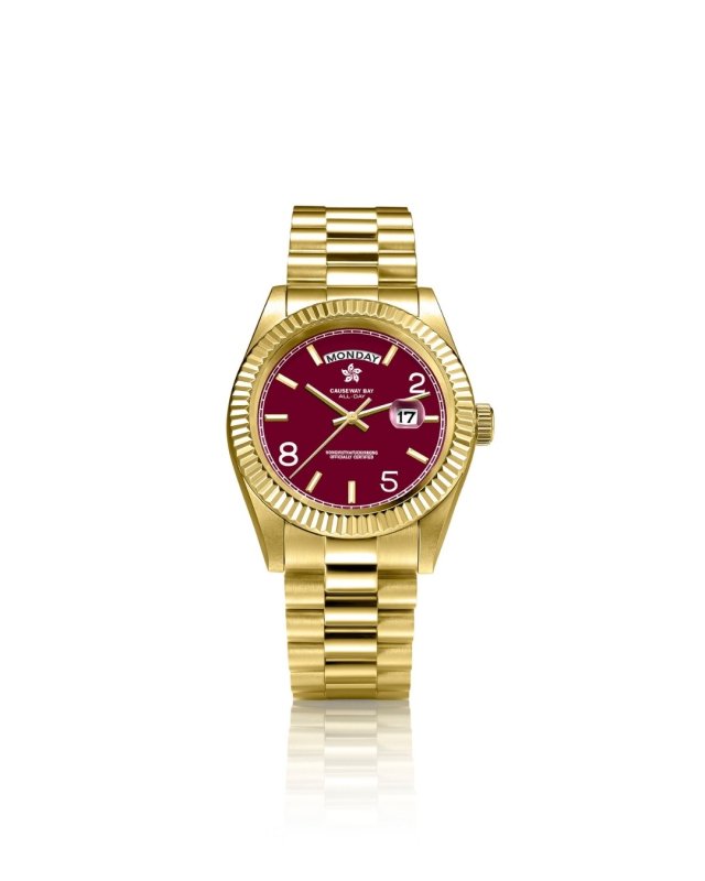 "ALL DAY" Watch [Gold/Maroon]