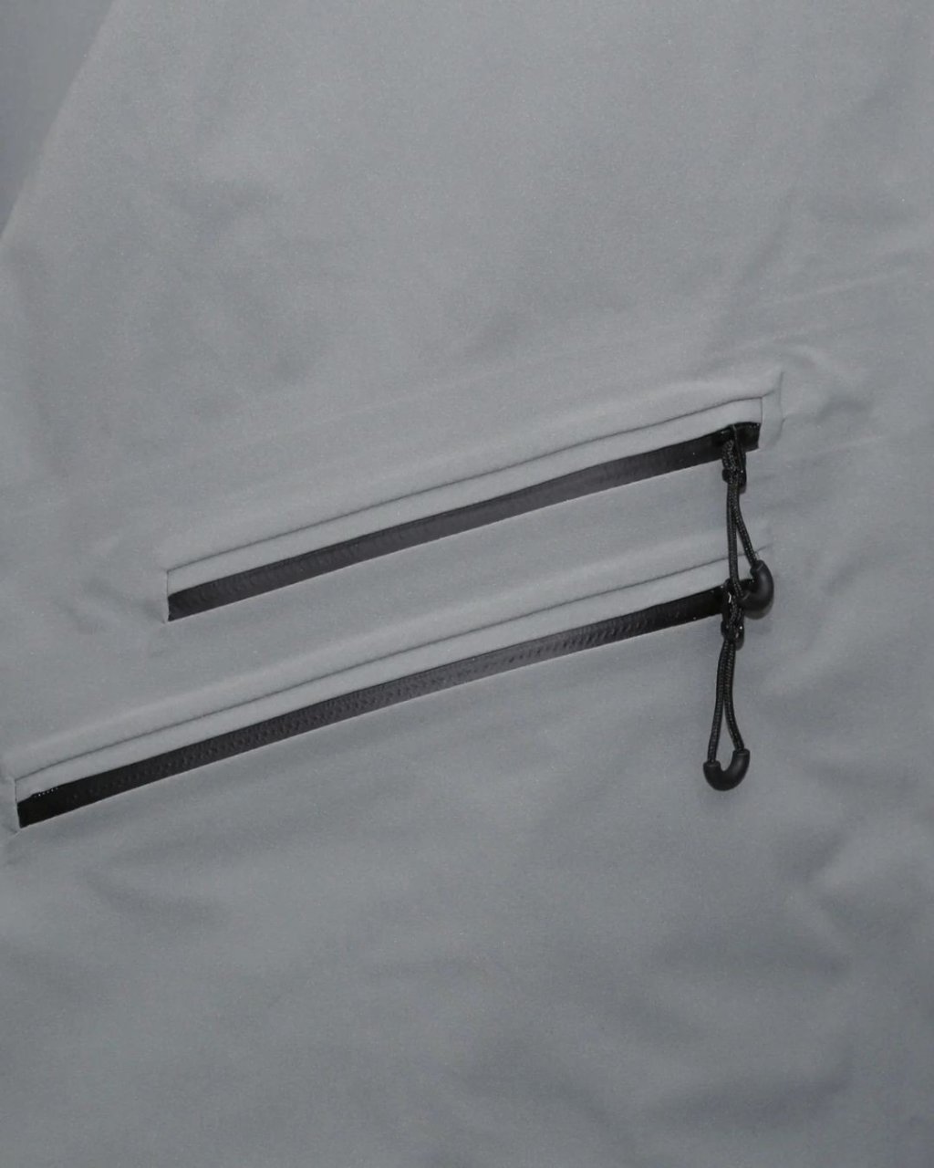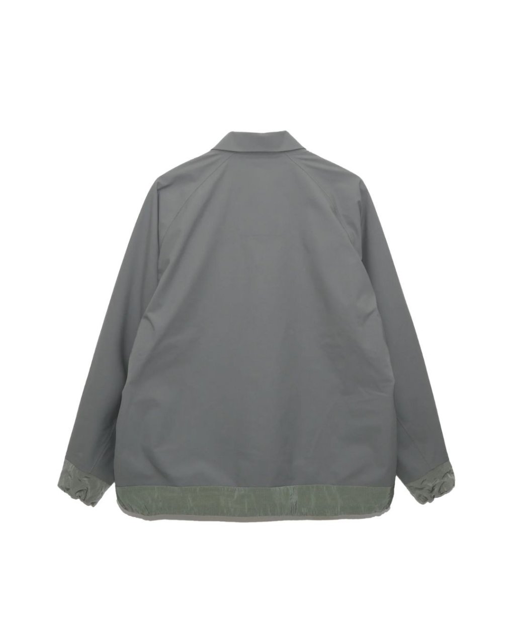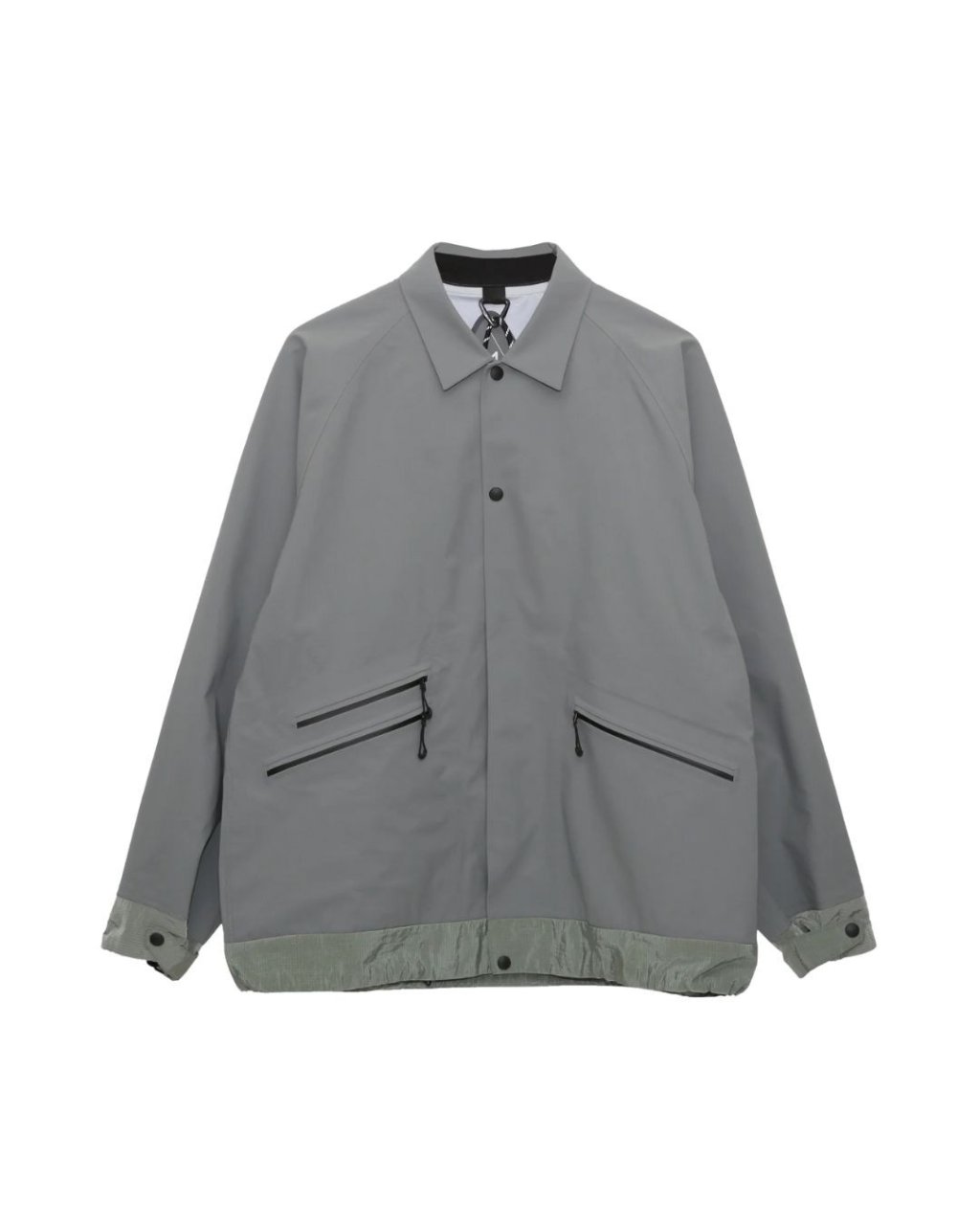 The MURASPO concept expresses the most standard coach jacket for action sports athletes during their off time.The main material is a 3-layer nylon stretch material that is water repellent, water resistant, and breathable.Nylon lip material, which is softer than the body material, is used around the wrists and hem to reduce stress on the skin.The back of the seams are taped and a waterproof zipper is used to ensure comfort even during the rainy season.The silhouette is designed with a large width to prevent stress even when layered, a front vertical windshield, and built-in suspenders.