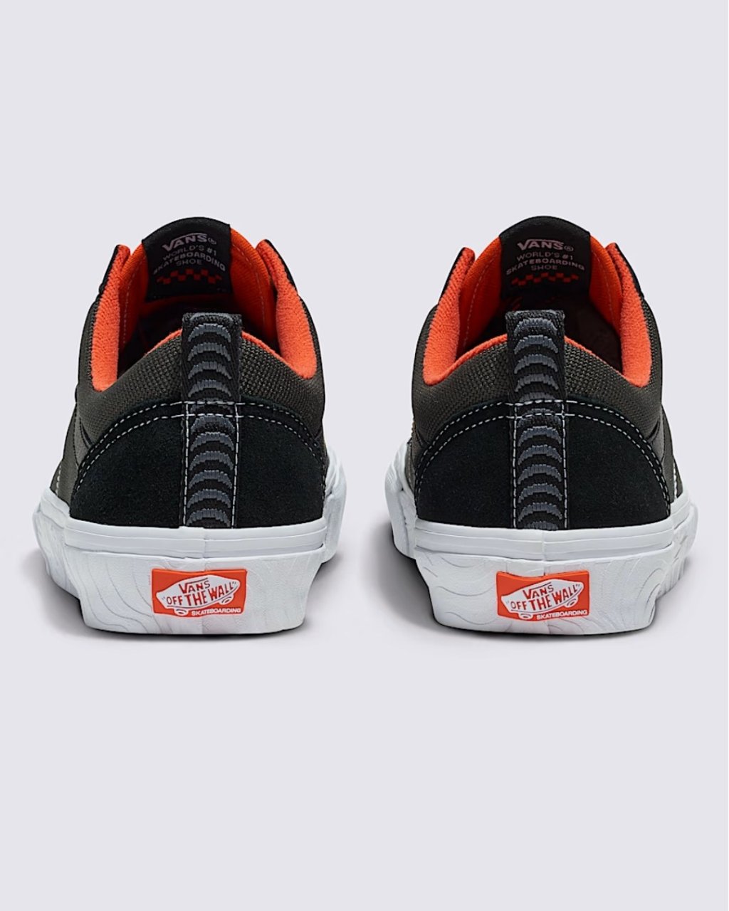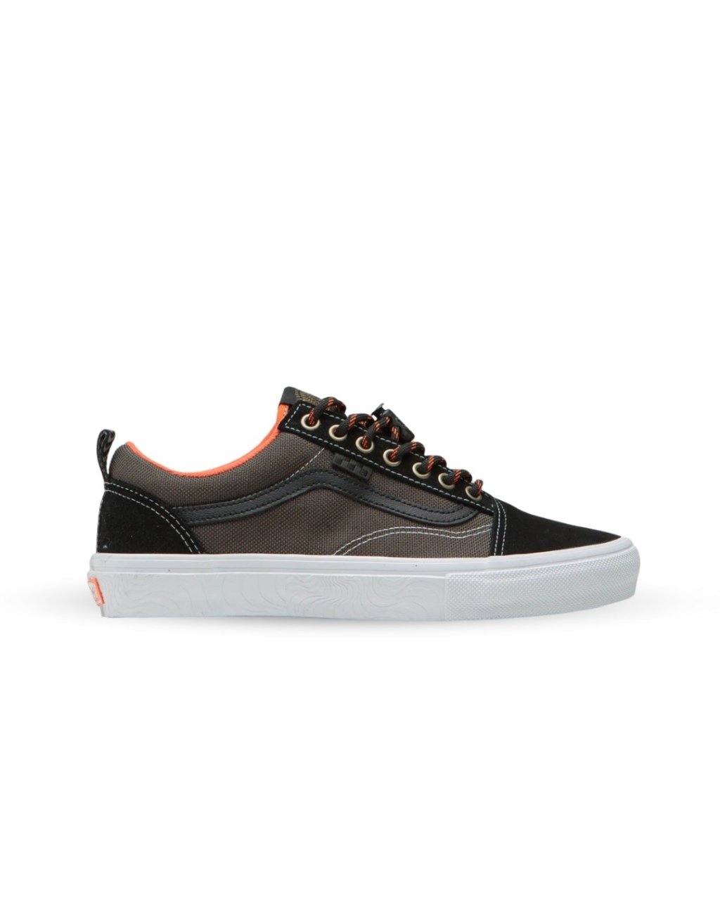 Vans x Spitfire Skate Old Skool Shoes in Black and Flame. Designed in collaboration with Spitfire Wheels, this Vans Skate Old Skool is styled with suede and ballistic mesh uppers and a water-repellent coating. Featuring contrast stitching, revised DURACAP™ reinforcements, a new two-part foxing, a PopCush™ footbed and a moulded heel counter, this black and orange Vans Skate Old Skool is styled in a colourway synonymous with Spitfires logo. Finished with a textured midsole, a Waffle outsole, metal eyelets, toggle-secured laces, co-designed tongue labels and with embroidered heel pulls.