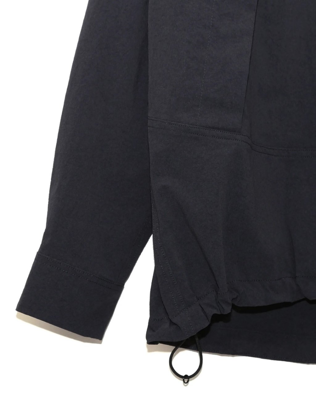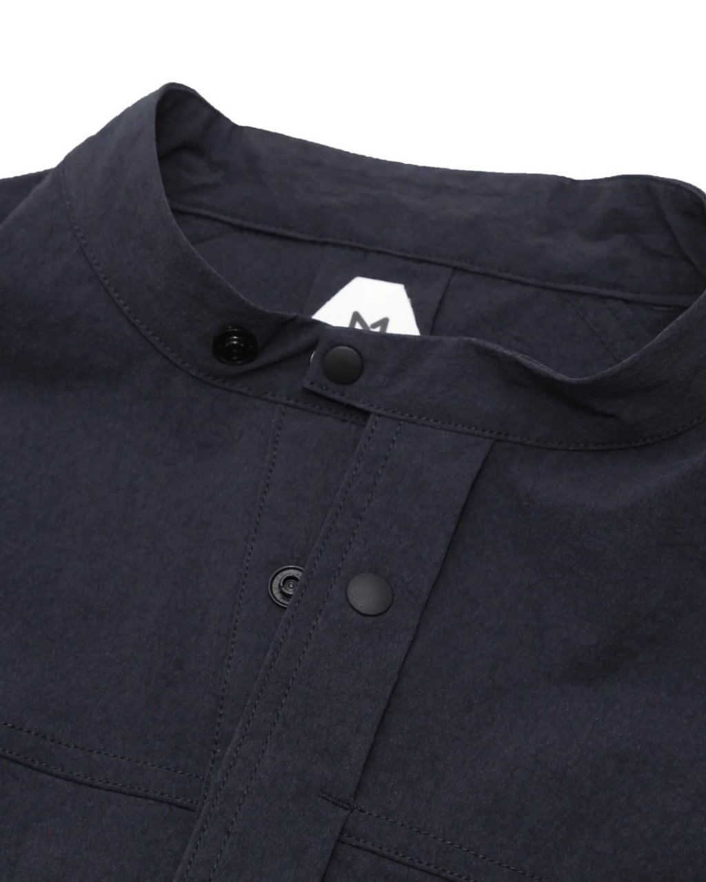 A shirt jacket that mixes the front pockets and stand collar shirts often found in 90's outdoor jackets. This item is perfect for layering with a T-shirt at the start of the season. Also useful as a functional item as a windbreaker.