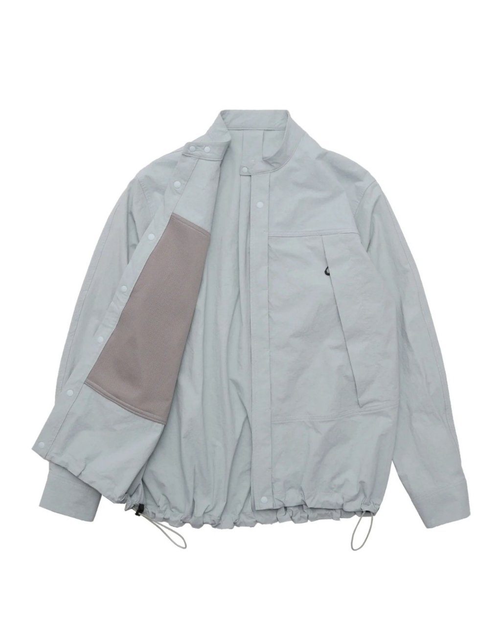 A shirt jacket that mixes the front pockets and stand collar shirts often found in 90's outdoor jackets. This item is perfect for layering with a T-shirt at the start of the season. Also useful as a functional item as a windbreaker.
