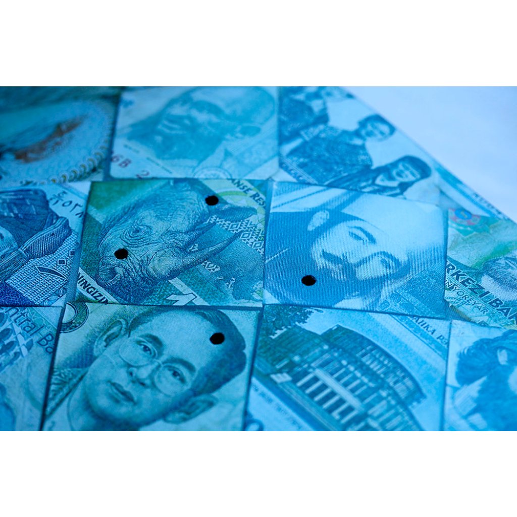 By painstakingly folding and reshaping them, Wallner has produced graphic structures and symmetrical patterns that illuminate the sheer power these banknotes can unfold. As payments are heading into a digital age, these twentieth century banknotes will be our last reminder of a time when we all had a piece of art crumbled up in our trousers and wallets.