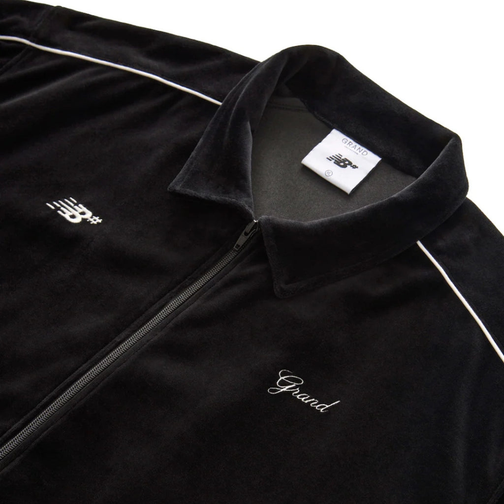 Details: 80% Cotton/20% Polyester Velour Spread Collar Embroidered Logos Piping on Sleeve Front and Back YKK Zipper Welt Pockets Cotton Rib Cuffs and Hem