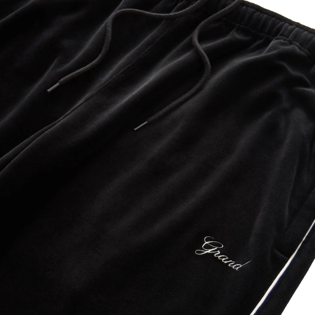Details: 80% Cotton/20% Polyester Velour Piping at Side Seam Grand and NB Embroidered Logos YKK Zipper Side Pockets Elastic Cuffs and Waist with Drawstring